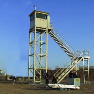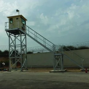 Une série de tours d’observation et de miradors fortifiés en fonction du degré de menaces attendues. Ergonomie associée à la sécurité, la facilité de manipulation et le confort. Construit à partir d’éléments galvanisés amovibles et une base en acier.
